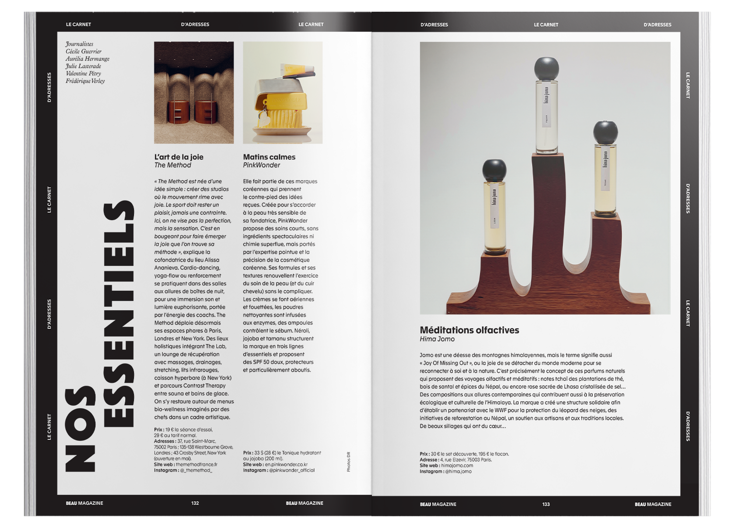 - Exclusive addresses and discoveries, covering all areas of daily life: Arts & culture / Changing rooms / Hospitality / Beauty / Interiors / Travel.